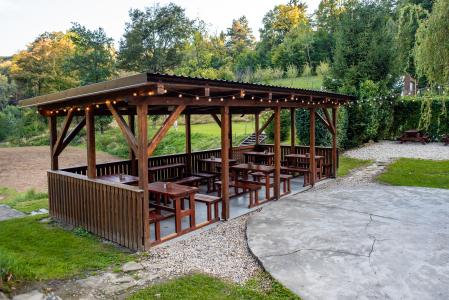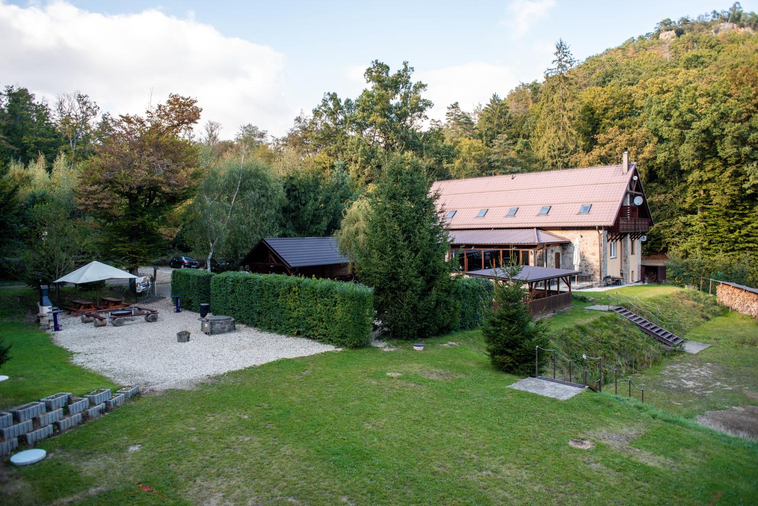 Kromě pokoje a naší restaurace můžete trávit volný čas na zastřešené terase nebo v prostorné zahradě s ohništěm a dětským hřištěm.